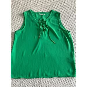 Violet & Claire Kelly Green Lane Up Sleeveless Blouse Sz S
