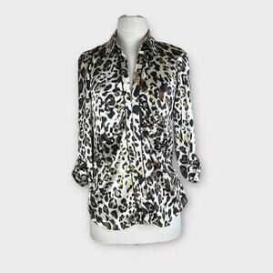 Violet & Claire NYC | Leopard Print Zipper Accent Roll Tab Sleeve Top | Medium