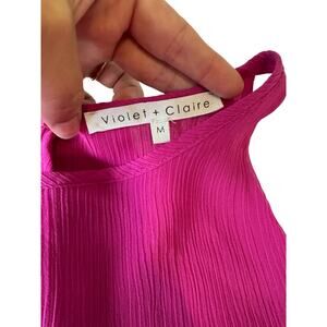 fuchsia pink blouse from Violet & Claire. Featuring a chic high neckline, pleated texture, and a split-back detail, this sleeveless top is perfect for warm-weather layering or pairing with tailored pieces for a polished look.