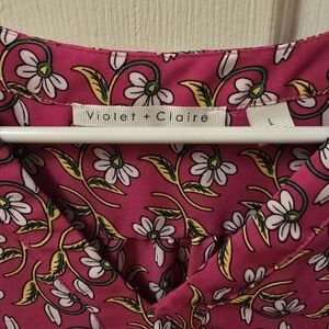 Chic sleeveless blouse with floral design. Vibrant pink and yellow hues. Ideal for casual wear.