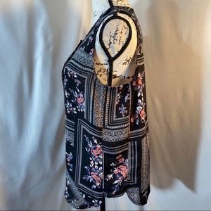 Violet & Claire Scooped Neck Half Button Down Floral Print Blouse Sz L