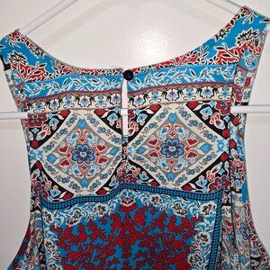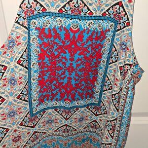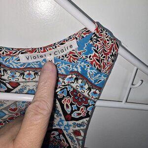 Violet + Claire Sleeveless Blouse Floral Blue Red Gray White Size Medium Boho