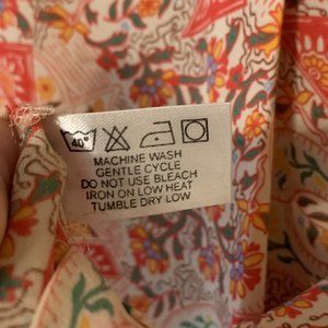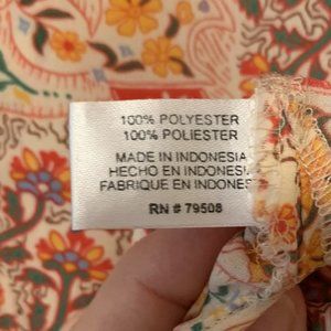 Very good preloved condition. No snags or stains. V-neck, flowy. Coral with darker red-orange plus other colors. See photos for measurements. 100% Polyester