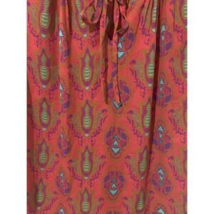 Violet & Claire Sleeveless Blouse Womens Size Medium Orange Pink Abstract Artsy. Measurements in Photos. Oversized. Light Weight. Key hole tie.