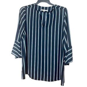 Violet & Claire Split V-Neck 3/4 Bell Sleeves Stripes Career Blouse Plus Size 2X