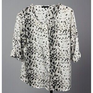 Violet & Claire Top Button Up Blouse Elbow Sleeve Leopard White Black Medium