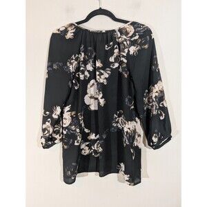 Violet & Claire Top Women Size M Black Floral 3/4 Sleeve Relaxed Blouse Office