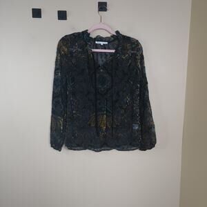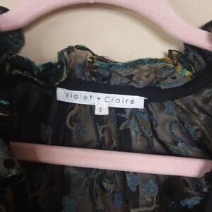Violet + Claire Velvet Burnout Puff Sleeve Ruffle Tunic Size S