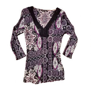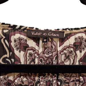 Violet & Claire Vintage Y2K Moroccan Style Black Maroon Pleated Top Blouse M