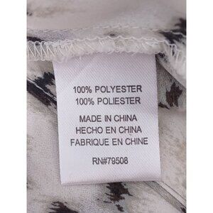 Elevate your style with the Violet + Claire Womens Large Animal Print Blouse. A chic blend of cream and brown hues, this semi-sheer, button-up tunic features a scoop neck and hidden buttons, rendered in a soft, durable polyester.