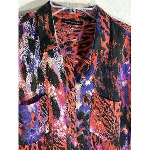 Violet & Claire Womens Large Violet Pink Orange Leopard Animal Collar Button Top