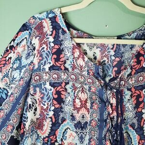 Violet + Claire Women's Multicolor Semi-Sheer Boho Floral Print Lace Up Front Tassel Blouse Size 2X