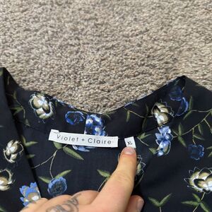 Violet & Claire Womens XL Blue Dark Floral Button Down Blouse Whimsigoth Career