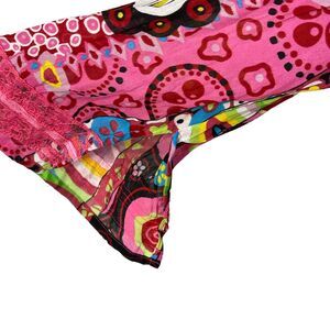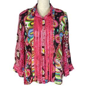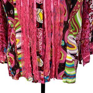 Violet & Claire X-Large Top Snap Front 3/4 Sleeve Boho Lace Geometric Pink Multi