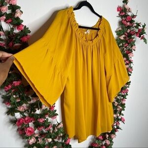 Violet & Claire Mustard Yellow Peasant Blouse 1X Off-Shoulder Gold Romantic