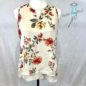 Violet & Claire ivory floral double layer keyhole top size medium