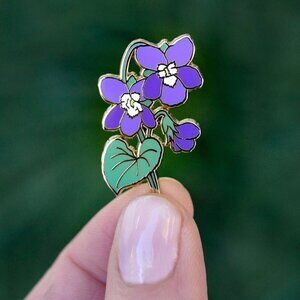 This is a high-quality and well-detailed enamel pin of a Violet Flower. There are two clasps on the back for securing the pin and preventing rotation. Each pin is about 1.25" inches tall and is packaged on its own meaning card. The pin and meaning card are further packaged in a clear plastic sleeve. The base metal is zinc alloy and is plated with gold. This is a Grade A Pin, the highest grade awarded to pins, meaning that it doesn't have any noticeable flaws.