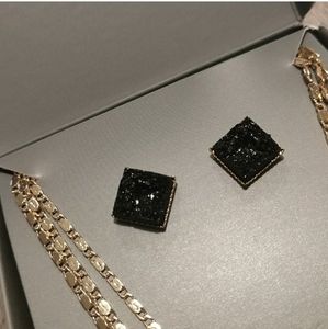 Make a statement with this fun, versatile gold-plated necklace + black square druzy earrings set perfect for dressing up or down, day or night. Necklace measures 16" with a 4" extender.