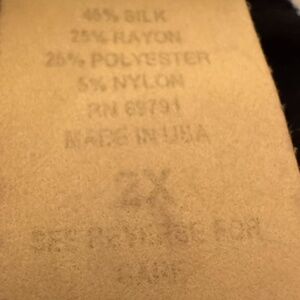 Fabric (silk blend): 45% silk, 25% rayon, 25% polyester, 5% nylon