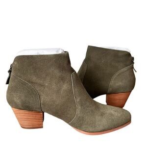 Violet & Red Cupid Suede Leather Ankle Boots Sz 10 Olive Green Boho Back Zip NEW
