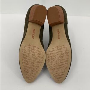 Violet & Red Cupid suede ankle boots olive green shoe bootie heel zipper new 9