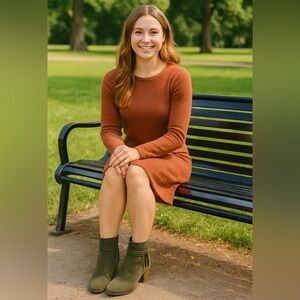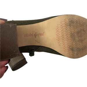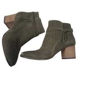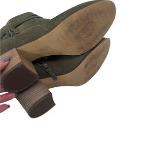 Violet & Red Dark Olive Fringe Side Zipper Ankle Block Heeled Boots- Size 8