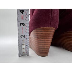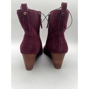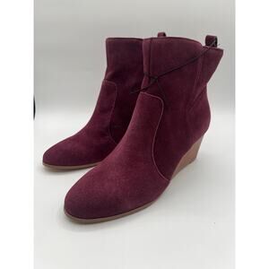 Violet & Red Jay Jay Suede Zip Wedge Heel Bootie Burgundy Red Women's Size 10M