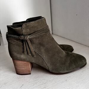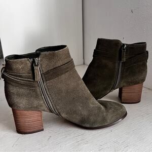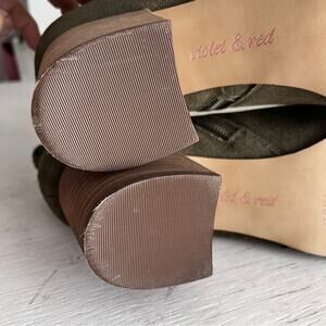 Violet & Red Jenna olive green suede ankle boot block heel size 9.5