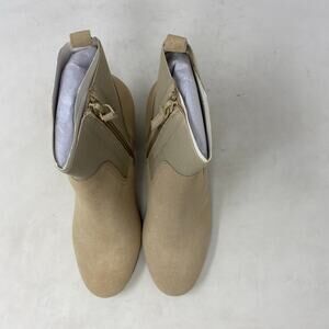 Violet & Red Loaded Knit Cuff Bootie Block Heel Faux Suede Tan Womens Size 7.5