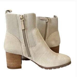 Violet & Red Loaded Knit Cuff Boots 9 NWOT Ankle Booties Beige Taupe Heel Suede