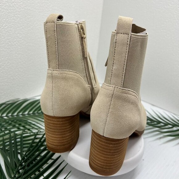 Violet & Red Tan Loaded Knit Cuff Round Toe Stacked Heel Bootie Size 6 NWOB