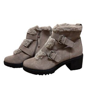 • Faux fur lining • Buckle strap closures • Block heel • Rubber sole for traction • Side zipper for easy wear
