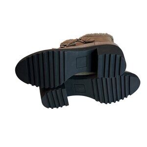 Violet & Red Women's Hailey Lug Sole Suede Buckle Boot Tan Size 8.5 NWOB