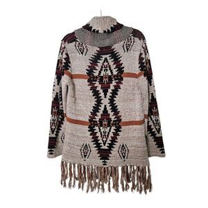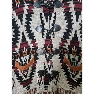 Armpit to armpit is 20.5 inches and the length is 24 inches not including the fringe. 2 front pockets. Cotton/acrylic, machine washable. Excellent condition. Open to reasonable offers.