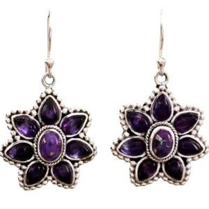 Violet Silver Tone Dangle Earrings Southwest Style Flower