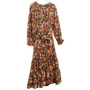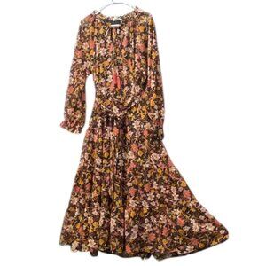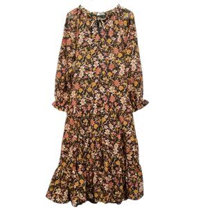 Violet Skies Vintage Boho Peasant Maxi Dress Tier Ruffle Long Sleeve Tie Neck M