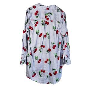 Violet Sky Blue Striped Cherry Print Half Button Top Size Medium