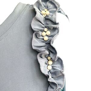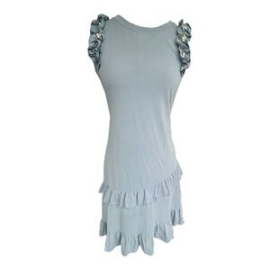 Violet Weekend Dusty Blue Rhinestone & Pearl Sleeve Ruffle Dress Size Small