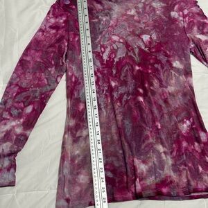 Stretch turtleneck, in this beautiful mix of tie-dyed, violets and grays. Excellent condition one of a kind see pictures for measurements, but as I said, this is stretchy. The first picture is just a reference for the fit and style.