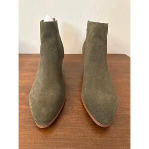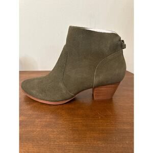 Violet and Red Leather Cupid Heeled Bootie Olive Green Size 8 New
