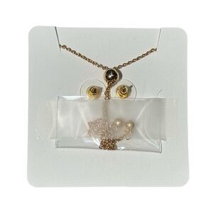 The smart, sophisticated set includes a gold-plated and black beads set on a dainty chain with an adjustable easy to use bolo clasp. Plus, round pounded gold-plated earrings.