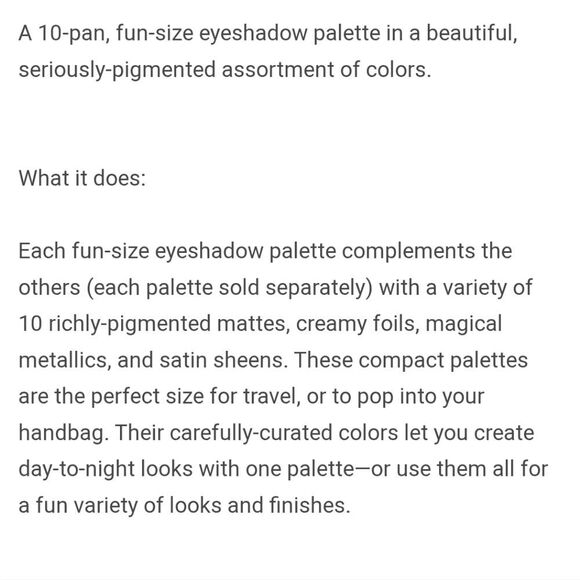 This is a 10-pan eyeshadow palette featuring a vibrant assortment of colors, including mattes, foils, metallics, and satin sheens.