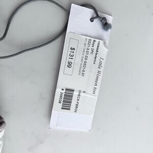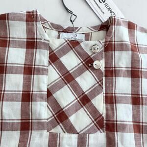 White shirt with brown plaid. Round neckline. Two-button placket. Short sleeve. Luxurios linen blend. NWT. Size 3. European children's designer.
