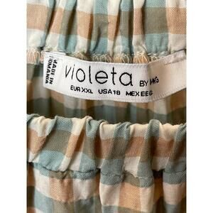 Violeta by MNG Checker Blue Peach 3/4 Sleeve Off The Shoulder Dress Size 18