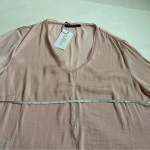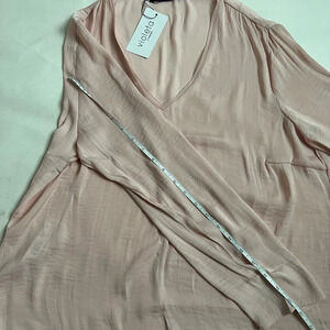 Violeta by Mango Pink V-Neck Women's Long Sleeve Blouse Top Size S NWT