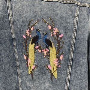 Violeta by Mango Embroidered Denim Jacket. NWT Please see photos for all details. Violeta sizing is a vanity size. Please see photos.