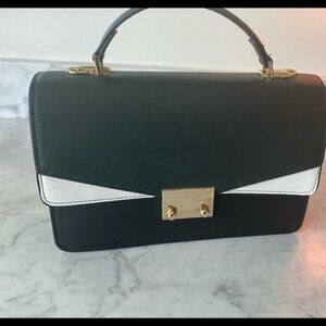 This bag can be worn as a crossbody bag or remove the straps for a classy looking handbag. Dark hunter green and black with gold accents. Like new! No signs of wear visible. See photos for details. 8/25