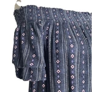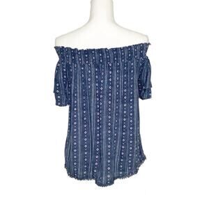 Violets & Roses Ballari Blue Printed Off The Shoulder Short Sleeve Top Medium