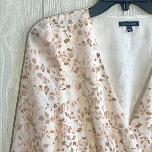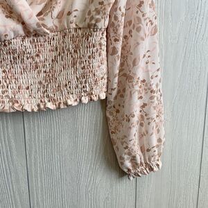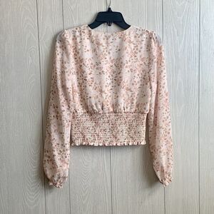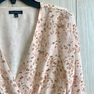 Violets & Roses Beige Pink Floral V-Neck Blouse Small NWOT