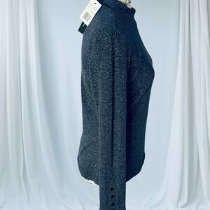 Violets & Roses Women’s S Metallic Long Sleeve Mock Neck Pullover Top in Night S